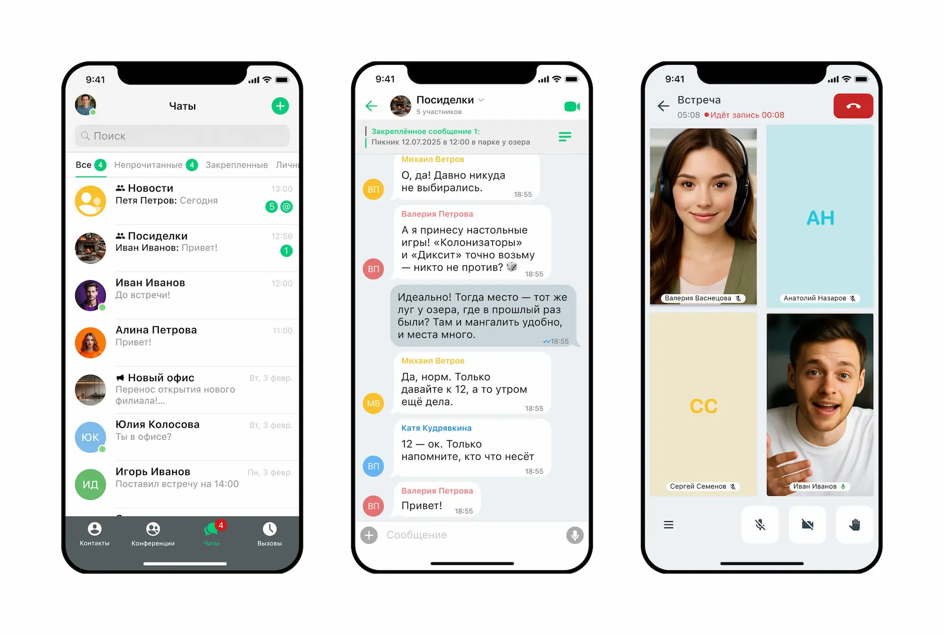 - Групповые чаты — собирайте общие чаты для отделов или проектов